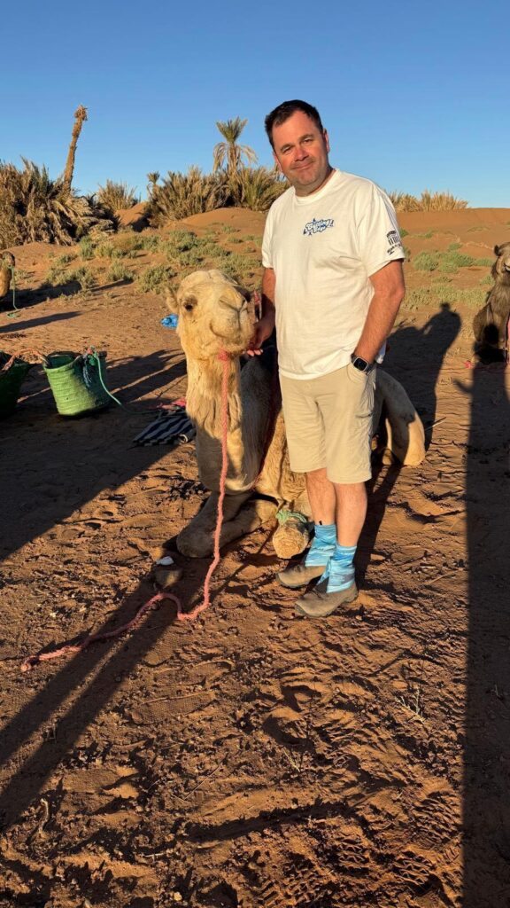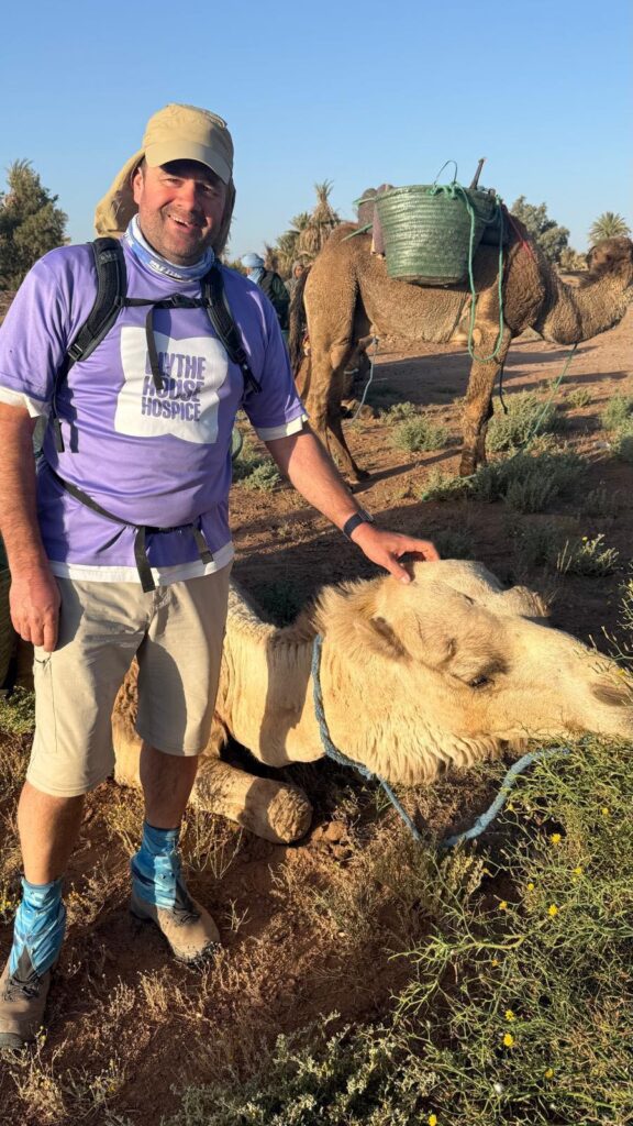 Totally in Chris’s words and we quote “Ok so I did a thing ! Well actually not strictly true, WE did a thing, we completed a challenge, by which I mean my 23 new friends and I, absolutely smashed a 50k walk through some of the most unruly and spectacular landscapes I have ever seen. The high temperatures, the wind, the sand, the rocks, the hills, the dunes and the zero alcohol were never gunna stop this lot. We have eaten together, slept together, used the same hole in the ground together, laughed a lot, cried a bit, mopped each other up, but most of all being there for each and every one us, to get through the amazing challenges of the Sahara desert. Oh we a did do some sand boarding too! The Berbers were amazing, the camels were great (and smell a bit) our tour manger Anna Gordon was amazing and looked after us, right from the arrival at Manchester airport to getting back. We also had amazing food at every location and a great party in Marrakesh after. It’s took quite a bit to write this, but I want to thank my amazing new friends at Blythe House Hospice for having me along and helping to raise over 45k for these great people to carry on doing there much needed work and support where it’s needed.”